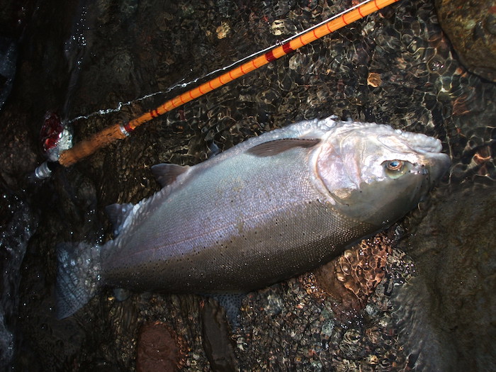 これが一番ヤバい、水流抵抗で一番ラインが切れやすい状態。